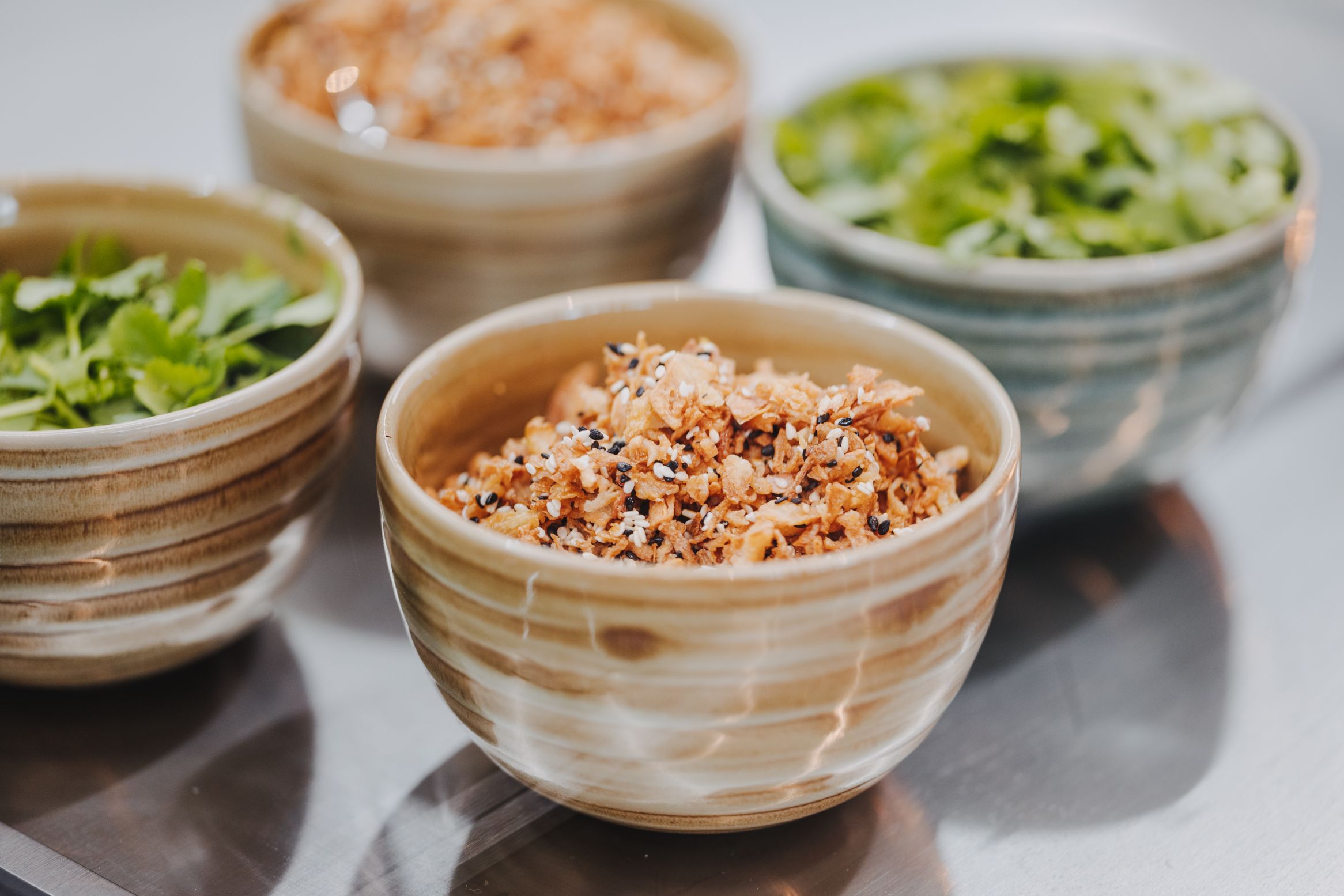 Sie können Ihre eigene Rebowl zur Abholung mitbringen oder für ein Pfand von 5 € online mit bestellen. Die Rebowl können Sie im Campus Garden wieder zurückgeben. Besteck ist nicht enthalten.
