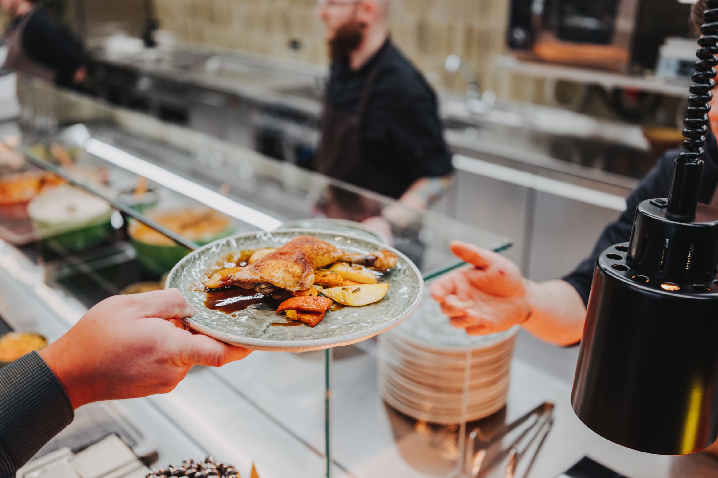 3. Mittagessen zwischen 11:30 und 14:00 Uhr im Campus Garden abholen. Dazu QR-Code an der Kasse vorzeigen und anschließend Mittagessen an der Theke abholen.